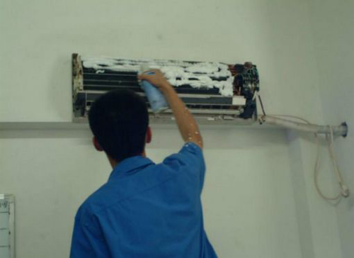 | 昆明市空调维修师傅给昆明市用户上门维修清洗空调。 |